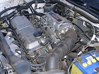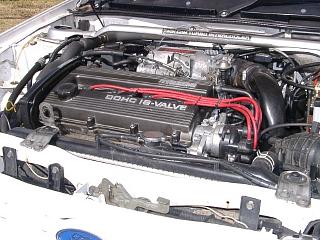 ![]() This is the New Motor!, Its a 1.8 BP Turbo motor with Double Overhead Cam (DOHC) it came complete with the Front half of the Jap import Mazda 323, 4WD |