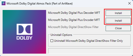 (3) Click Install next to both Decoder MFT and Encoder MFT: